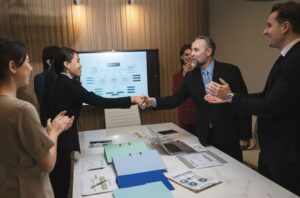 Professional team discussing a strategic IT partnership and software development plan to drive business growth and enterprise value.